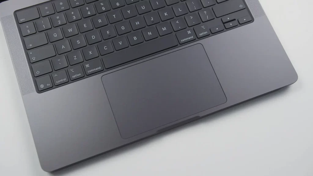 Touchpad je, kao i ranije, prostran i precizan, a vizuelno i na dodir se sjajno uklapa u asketsku Macbook Pro siluetu. Zasnovan na Apple-ovom Force Touch sistemu. Pruža taktilnu povratnu informaciju jasno osetljivu na jagodici prsta, dakle bez pomeranja fizičkih delova, što doprinosi dugovečnosti i ravnomernom odzivu po celoj površini. Možda deluje gotovo savršeno, ali autor ovog teksta kao neko ko živi i spava sa Windows PC računarima, se nikada neće navići na ovu Macbook specifičnost i njegov princip touchpad-a i to je deo koji subjektivno najviše smeta na ovom laptop-u.
