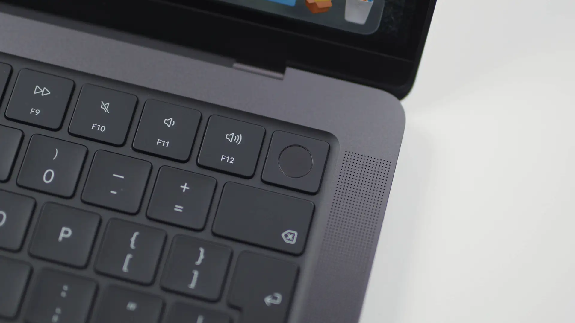 Ekran se spušta skoro do donje lajsne. Donje ivice ekrana su pod pravim uglom, dok su gornji neodoljivo zaobljeni. Na sredini je onaj uobičajeni izrez za kameru i senzore. Imam utisak da bi Apple morao da poradi na njegovoj eliminaciji koliko već u sledećoj generaciji, jer uprkos tome što je isprva možda bio zanimljiv kao novitet, svaki put postaje sve jasnije da kvari gotovo idealan dizajn i izgled Macbook Pro računara.