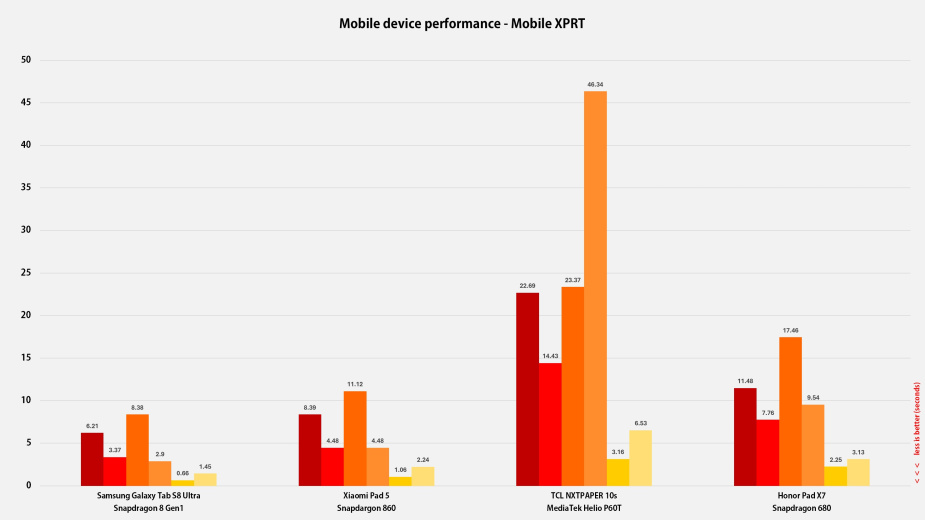 Honor 7 Pad X7 nema procesor koji će oboriti benchmark rekorde ali zato ima vrlo savremen i sposoban hardver za svoju primarnu misiju. Pokreće ga osmojezgarni Snapdragon 680 čip izrađen u 6 nm procesu, sa 4 vrlo sposobna jezgra Cortex-A73 klase na 2.4GHz + 4×Cortex-A53 na 1.9 GHz i Adreno 610 grafičko jezgro, a što omogućava potpuno glatko izvršavanje čak i više zadataka istovremeno.